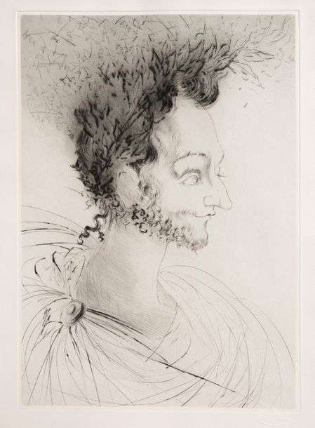 Edition ornée de 18 cuivres originaux gravés à la pointe sèche et au rubis par Salvador Dali. Couverture gaufrée illustrée d'un portrait de Ronsard. Un des 164 exemplaires sur papier vélin d'Arches blanc (n°146), signé et daté «68» par l'artiste et revêtu du cachet de l'éditeur à l'empreinte de Dali.