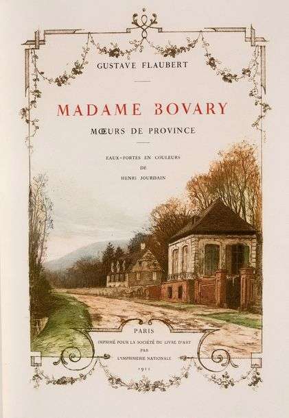 Madame Bovary. Moeurs de province. Paris, Imprimé pour la Société du Livre d'art par l'Imprimerie nationale, 1912. In-4, maroquin rouge, janséniste, encadrement intérieur d'un filet gras à froid et de deux triples filets dorés, doublure et gardes de moire rouge, tranches dorées sur témoins, couverture et dos, étui (Ch. Septier).