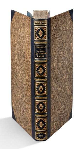 Contes du temps passé. Précédés d'une notice littéraire sur Charles Perrault par M. E. de La Bédollierre. Paris, L. Curmer, 1843. Grand in-8, demi-maroquin bleu nuit à long grain avec coins, dos orné, fleurons dorés et mosaïqués de rouge, non rogné, couverture et dos (Noulhac).