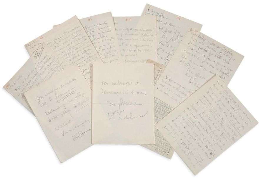 9 lettres autographes signées au crayon de Louis-Ferdinand Céline à son avocat danois sur son hospitalisation au Sundby Hospital au