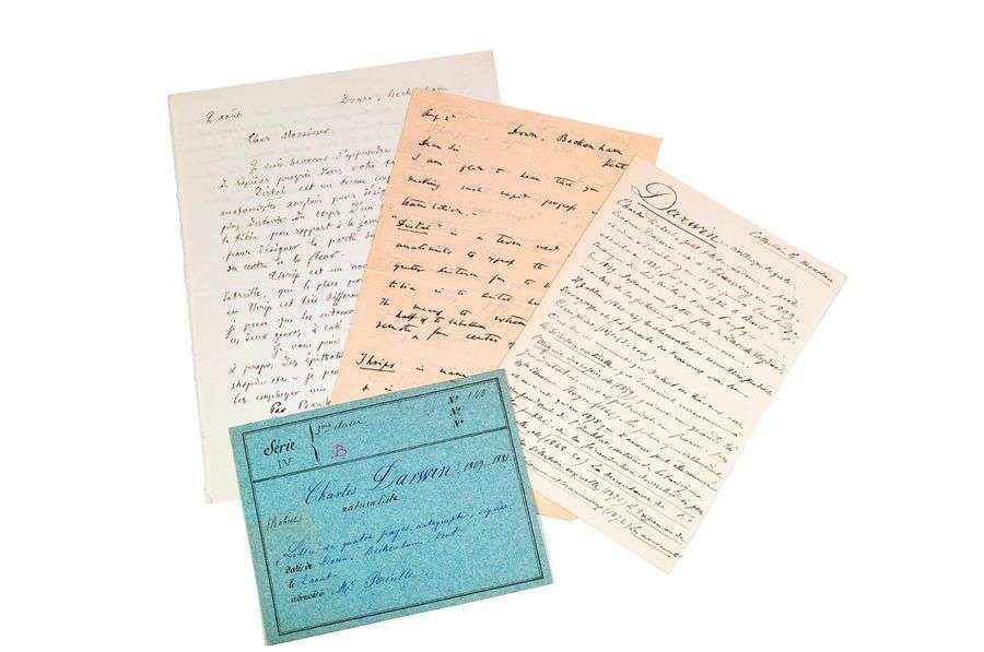 L.A.S. à Louis Rérolle. Down Beckenham (Kent), 2 août (1869). 3 pp. bi-feuillet in-8| en anglais. Joint une traduction de l'époque, et 2 fiches du collectionneur sur Darwin.