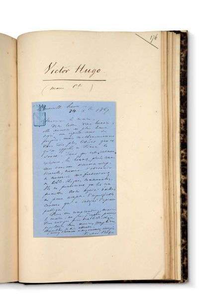 COLLECTION d'environ 255 L.A.S. d'écrivains du XIXe siècle| montées ou collées en 2 forts volumes in-fol. reliés demi-chagrin noir (rel. usagées).