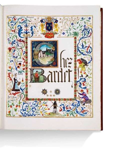 La belle page de titre, richement enluminée à la main et signée J.-M. Prétrot (1968), célèbre l'attachement de Bardet aux vins de Loire: Chaume, Savennières, Layon, Anjou, Cabernet, Saumur, Rablay...