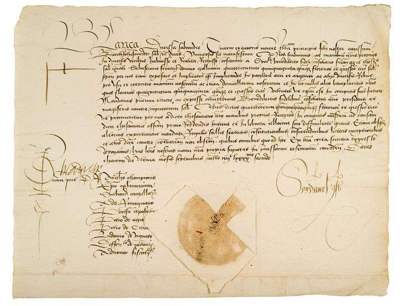 P.S. «Blanche», Turin 30 septembre 1492| contresignée par SORDANET| 1 page oblong in-4, sceau sous papier| en latin.