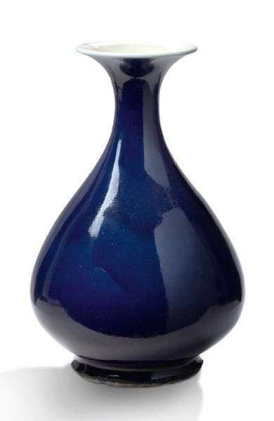 Vase piriforme en porcelaine émaillée bleu nuit, l'ouverture légèrement évasée.