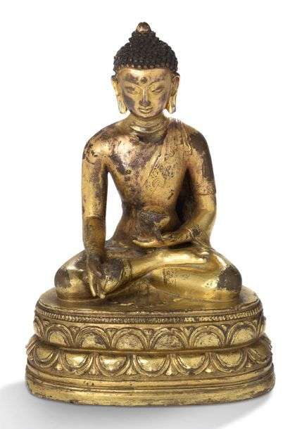 Amitabha assis en méditation sur un socle de lotus, la main gauche tenant son bol.