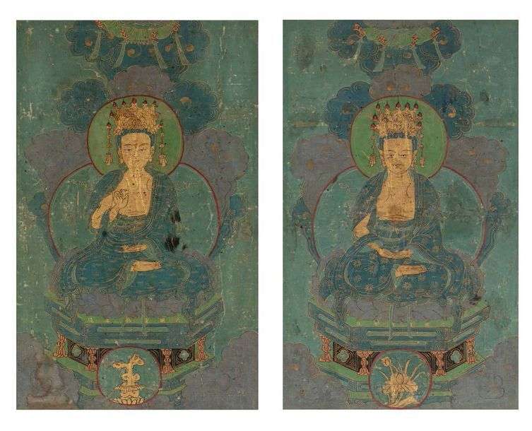 绢本设色无量寿佛、不空如来佛画像