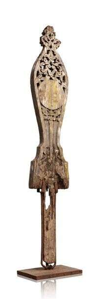 Stèle en bois dur sculpté et incisé de décor floraux stylisés