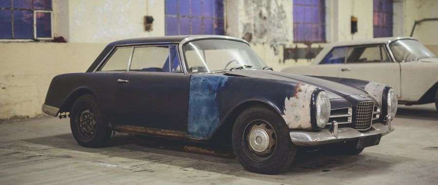 Livrée neuve à Bruxelles au concessionnaire Beherman-Demoen, notre Facel III coupé 4 place fut immatriculée pour la première fois le 13 janvier 1964. De couleur rouge métal avec un intérieur noir, on sait grâce à l’Amicale Facel qu’elle devait initialement être livrée à la SIDAM, le concessionnaire de Neuilly-sur-Seine. On ignore réellement la raison de ce changement. Son premier propriétaire l’immatricula (0427G) le 17 juillet 1964 avant de la revendre à Madame Danielle van Meldert. Cette dernière la conserva pendant plus de 40 ans. L’utilisant régulièrement les premières années, elle fut peu à peu remisée pour finalement tombée dans l’oubli. La voiture est alors vendue à un collectionneur hollandais souhaitant se lancer dans une restauration du véhicule mais un problème de santé contraignit ce dernier à s’en défaire. Monsieur Staub s’en portera alors acquéreur en 2014. Un début de restauration a donc été entreprit sur ce véhicule il y a plusieurs années. Extérieurement et intérieurement, la voiture est complète. Le moteur Volvo B18B est présent avec tous ses accessoires, tout comme la boite de vitesse avec overdrive et les freins. L’habitacle s’avère en assez bon état. Les sièges, armatures et cuirs sont relativement propres et pourront être préservés avec un peu de travail et un bon coup d’huile de queue de bœuf. L’ensemble des compteurs au tableau de bord est au complet, on note d’ailleurs une montre en option. Les accessoires intérieurs et les pièces en acier chromé extérieurs comme les pare-chocs, calandre et phares avant Megalux sont bien présents et en bon état. C’est sans grande difficulté que cette élégante Facel III pourra reprendre la route avec une restauration soignée. Portant le numéro de production 4210, il est un des derniers Facel III à avoir quitté l’usine de Colom
