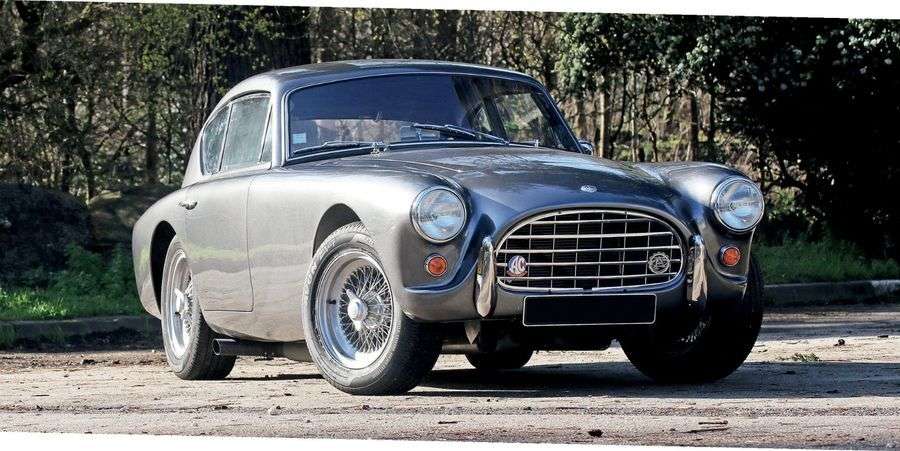 Le succès en compétition de la Tojeiro Sport de Cliff Davis poussa AC Cars à mettre le modèle en production en 1954, sous le nom d’Ace. La carrosserie de la voiture de Davis, très inspirée de la Ferrari 166 MM barchetta, fut reprise, de même que le châssis échelle et la suspension indépendante inspirée des Cooper imaginés par John Tojeiro, mais le moteur restait le vénérable six cylindres 2 litres à course longue AC. Ce moteur à arbre à cames en tête remontait à 1919 et avec ses modestes 80 ch (plus tard 100 ch) donnait à l’AC des performances respectables, même si elles n’étaient pas spectaculaires. Très peu de modifications furent apportées à l’Ace et à l’Aceca en dehors du changement de moteur en 1956, quand le plus puissant six cylindres 2 litres Bristol (jusqu’à 130 ch) fut disponible, ou vers la fin de production, lorsque le moteur 2, 6 litres de la Ford Zephyr fut également proposé. La combinaison entre un châssis qui tenait bien la route et un rapport poids/ puissance intéressant – avec le moteur Bristol, la voiture atteignait 190 km/h – permit de glaner de nombreux succès en course, son meilleur résultat étant sa septième place au classement général et première de sa classe au Mans en 1959 ! Selon l’ouvrage AC in details de Rinsey Mills, AEX542 est l’une des rares Aceca livrées neuves aux Etats-Unis le 30 décembre 1955 par l’importateur Michell & Pauli. A l’origine de couleur Ford Opal Blue avec un intérieur en cuir noir, nous savons qu’elle fut remisée suite à un accrochage au début des années 1970. Entière démontée et réparée avec des pièces refabriquées par l’usine de Thames Ditton, sa restauration est achevée en 1976. Cependant, ce n’est qu’en 2012 en Arizona qu’elle réapparait dans sa teinte actuelle (Sterling Metallic Gray) avec un moteur V8 Ford 260 (4.3l). Côté performa