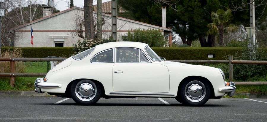 L a Porsche 356 n’est rien de moins que le premier modèle produit par la marque allemande. Il a été imaginé pendant la Seconde Guerre mondiale par Ferry Porsche sur les bases mécaniques de la Volkswagen Coccinelle par souci d’économie et dessiné par Erwin Komenda, alors tous deux expatriés en Autriche à Gmünd. C’est dans cette ville qu’en 1948 le premier prototype et une première série de 356 sont fabriqués. Puis, la totalité de la production déménagera à Stuttgart en 1950. Baptisée pré-A, la première série se révèle aussitôt un succès commercial aux Etats-Unis. Notamment auprès des acteurs hollywoodiens, à commencer par James Dean qui deviendra malgré lui une icône de la marque. Fabriquée jusqu’en 1955, la 356 pré-A propose son moteur quatre-cylindres à plat en trois cylindrées (1 100, 1 300 et 1 500 cm3) et les déclinaisons Coupé, Cabriolet et Speedster qui seront reprises sur les versions ultérieures. Puis, elle cède sa place à la 356 A, largement modifiée et proposée avec cinq motorisations dont trois 1 600 cm3. En 1960, la 356 A est remplacée par la 356 B (T5) entièrement repensée. Sa puissance s’étend de 60 chevaux pour la 356 B 1600 à 140 chevaux pour la 356 B 2000 GS-GT Carrera 2. La série B se distingue également de sa devancière par son pare-chocs avant au positionnement plus élevé d’environ dix centimètres équipé de butoirs de parechocs élargis, ainsi que par des phares positionnés plus haut. Avec la BT6 sortie en 1962, la 356 B se voit dotée d’un capot avant s’élargissant nettement vers le bas, ainsi que d’une trappe de réservoir située dans l’aile avant droite. L’ultime version, la 356 C millésime 1964, ne recevra pas de modification sur sa carrosserie, mécaniquement l’arrivée de 4 freins à disque constitue la principale évolution. Vendue neuve en Californie à la fin de l’année 1963, notre 356 1600 SC carrosseri