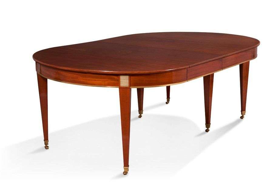 Elegante table de forme ovale en acajou mouluré et placage d’acajou