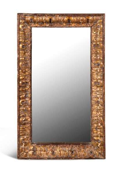 Miroir de forme rectangulaire en bois sculpté et doré à décor de feuillage