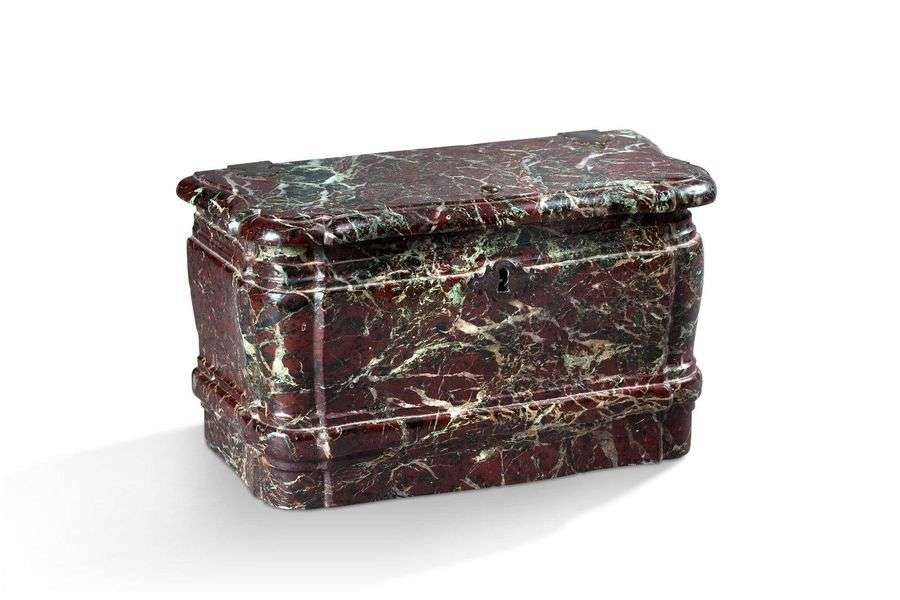 Grande boîte en marbre Campan de forme contournée à décor mouluré découvra