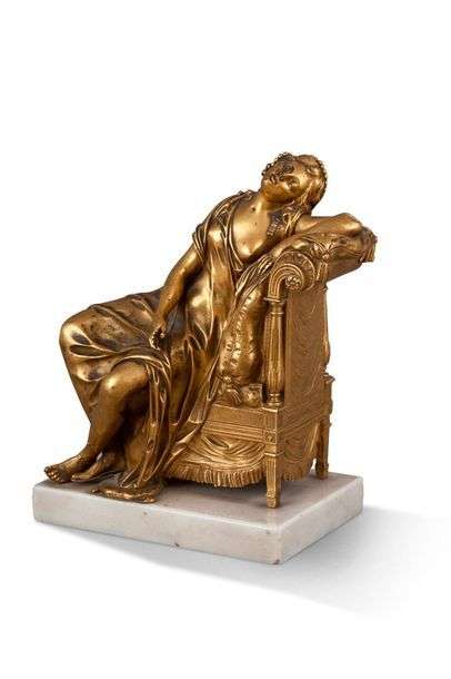 d’une femme allanguie sur une méridienne. Base en marbre blanc