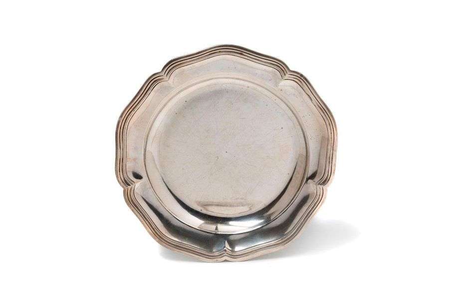 Plat rond à bord chantourné en argent modèle à filets contours.