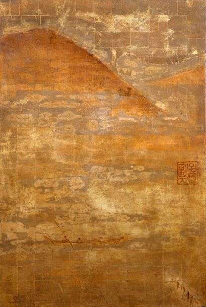 Laque et rehauts d’or, signée et datée 1983 (?) en bas à gauche