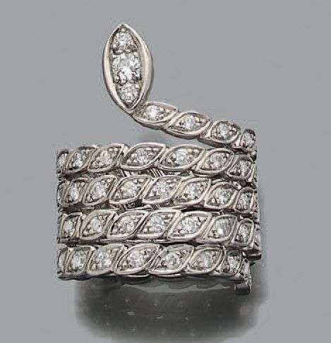 Bague "serpent". Diamants, platine (950). Signée et numérotée