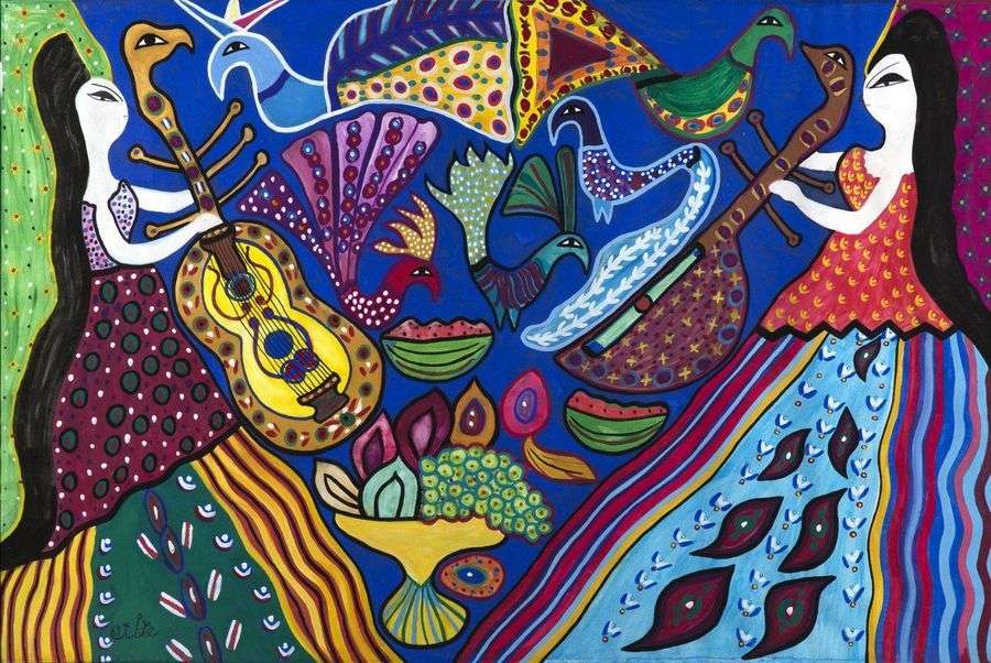 Mixed media on paper, gouache and watercolor, signed and dated lower left