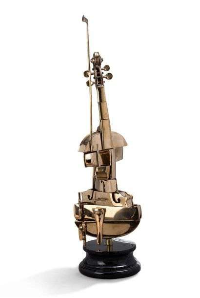 Bronze à patine dorée et marbre, signé et numéroté XXI/XXXGolden patina bronze and marble, signed and numbered XXI/XXX 72.5 x 20 cm
