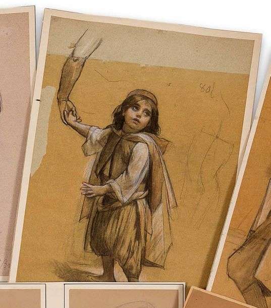 Fusain, sanguine et craie sur papier