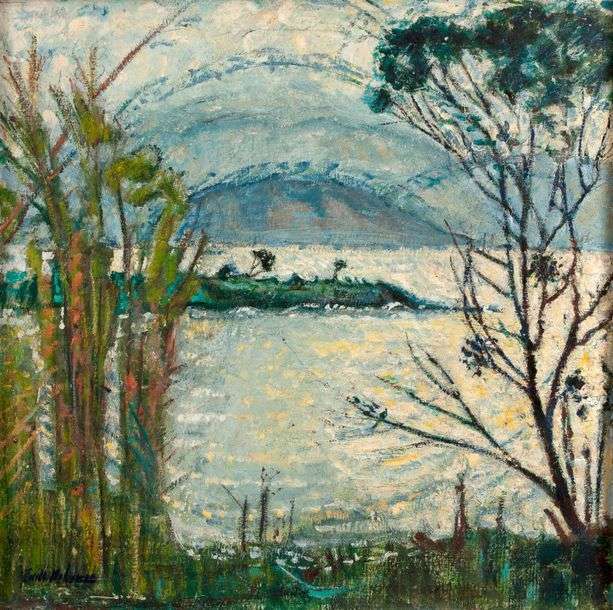 Huile sur carton, porte une signature~
