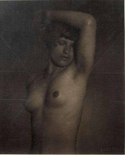 «Nu au bras levé», photographie originale signée. 1929, tirage aux pigments d'époque contrecollé sur un passe-partout d'origine. 28,3 x 23 cm, sous encadrement.