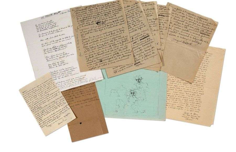 Réunion de 337 lettres, cartes et notes, la plupart autographes et signées, adressées à Leonor Fini. 1932-1991, ensemble de plus de 1000 pages à l'encre sur500 feuillets, divers formats. (Taches, mouillures, déchirures et manques atteignant parfois le texte, une lettre déchirée en 4 morceaux).