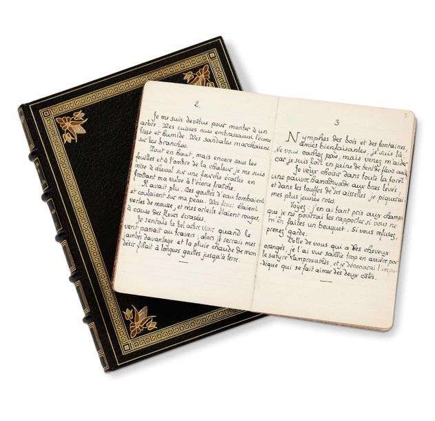 Seul texte véritable et complet. Précieux et unique manuscrit titré par Pierre Louÿs de 22 poèmes en prose à l'encre, la plupart érotiques, variations libres sur Les Chansons de Bilitis publiées en 1895.