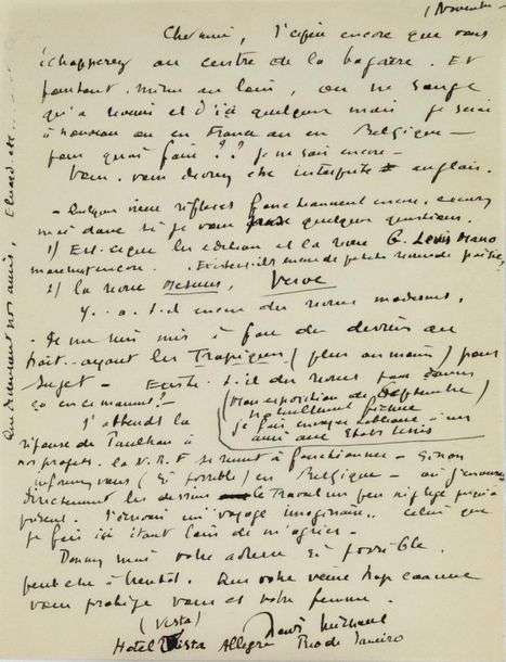 Rio de Janeiro, Novembre [1939], 1 page in-8 à l'encre sur papier.