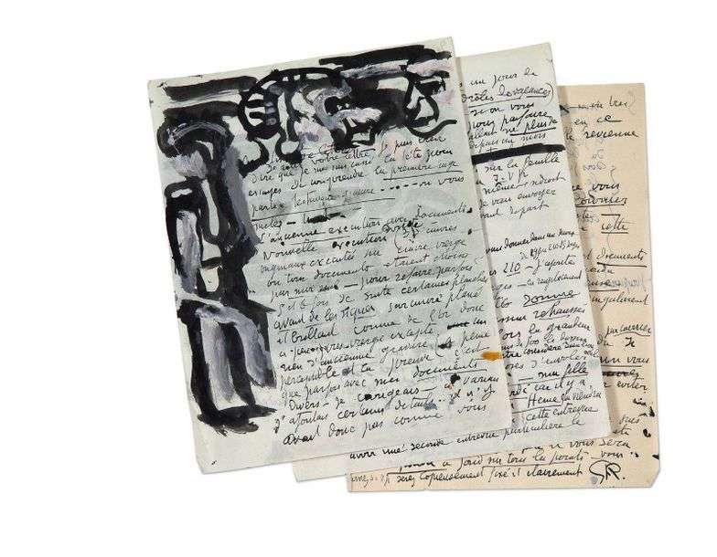 Dans cette lettre illustrée de deux dessins à la gouache, Rouault révèle à Vollard l'avancée de ses travaux. À la demande de ce dernier, Rouault travaille, dès 1932, à la réalisation d'un grand livre de peintre Le Cirque de l'étoile filante. L'artiste évoque dans cette lettre les «bois et eaux-fortes du Cirque». Il réalisera pour ce livre 17 eaux-fortes originales en couleurs hors texte, et 82 bois dans le texte.
