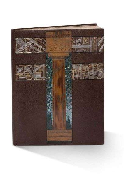 Paris, F.-L. Schmied pour la Société du livre contemporain, 1924. In-4, maroquin brun, laque signé par Schmied encastré dans le premier plat, titre mosaïqué sur deux bandes horizontales en maroquin argenté et doré d'après la maquette de Schmied, dos lisse muet, doublure et gardes de maroquin marron glacé, tranches dorées, couverture conservée. Chemise et étui (Devauchelle).