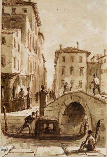 Victor-Jean Nicolle fut envoyé en Italie par Louis XVI afin d'enregistrer par l'art du dessin les vues de Rome, de Naples, de Florence et Venise. Ses dessins, contenant une grande quantité de détails, immortalisent des moments éphémères de réalité tout autant que l'environnement immuable de ces villes, plusieurs décennies avant l'invention du reportage photographique. Ce dessin faisait partie de l'album d'environ 240 dessins, lavis, et aquarelles de Nicolle, composé vers 1818 par l'un des Colnaghi de Londres, et ayant appartenu à Jean Camille Jammes