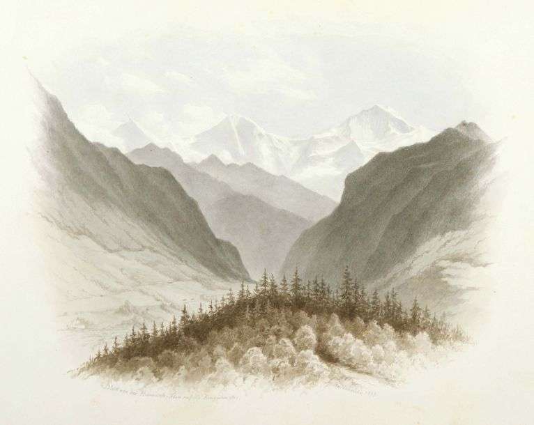 Von Hanstein a réalisé cette vue de la Jungfrau dans les Alpes suisses grâce à une attentive observation de la nature environnante, suivant les préceptes mis en place par les peintres impressionnistes en France par exemple, plutôt que par la seule imagination de l'artiste en atelier. Formé par Wilhelm Herbig à l'Académie de Berlin, von Hanstein réalise des portraits, miniatures, scènes religieuses et paysages. C'est dans ce dernier genre qu'il montre tout son art du dessin, comme le montre cette vue qui émeut par son sens du sublime, cette «terreur délicieuse» définie par Edmund