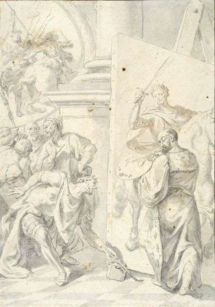 Plume et encre brune et grise, lavis brun et gris sur traits de crayon noir