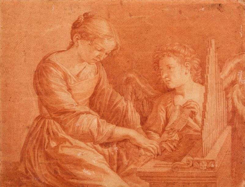 Ce dessin est à rapprocher du tableau d'Orazio Gentileschi, Sainte Cécile et un ange, vers 1618 - 1621 (huile sur toile, 86,3 × 106,6 cm) conservé à la National Gallery of Art de Washington.