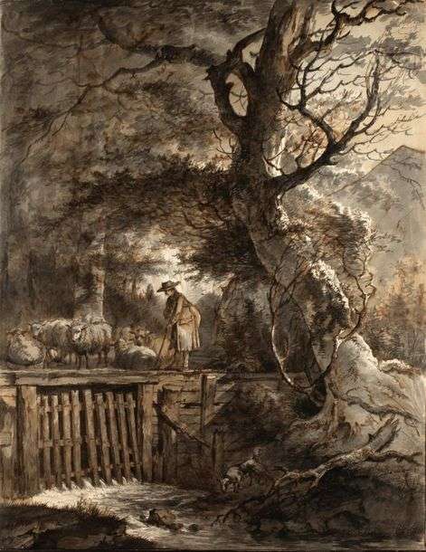 Paysage avec un berger conduisant son troupeau