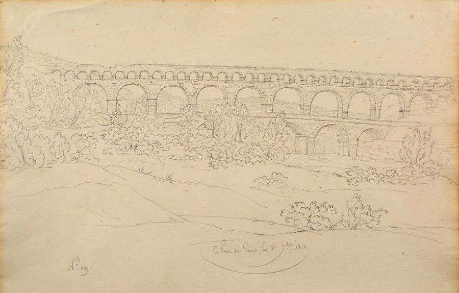 Quatre dessins représentant des monuments du Sud de la France en 1818: