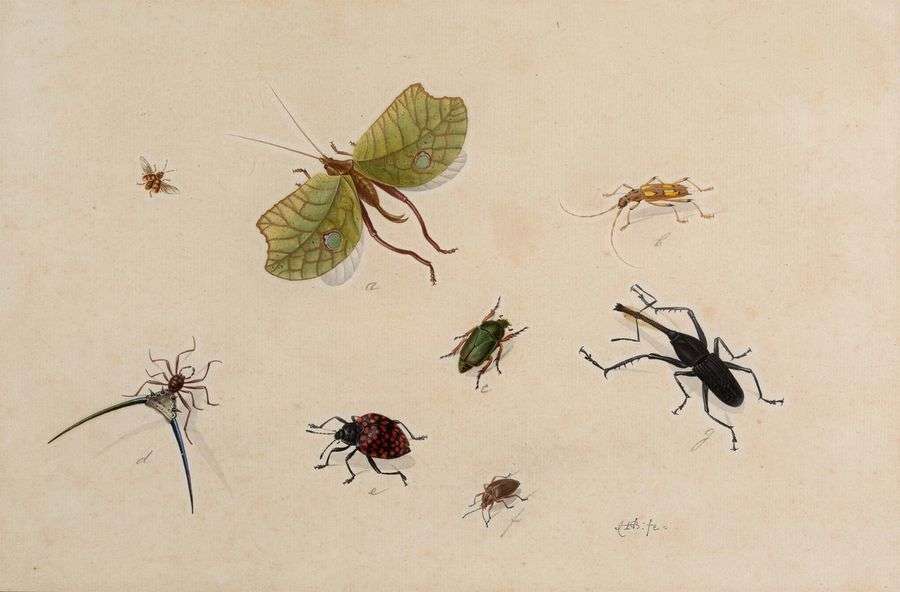 Coléoptères de l'Amérique méridionale: Rhina barbirostris, homoeotelus pallidus, erootylus giganteus, pterochroa erosa - Surinam. Eubira octolineata, macraspis chrysis - Brésil. Gasteracantha arcuata - Java.
