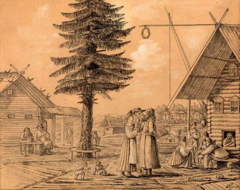 Signée en bas à droite et annotée au dos à l'encre brune « idée de village russe »