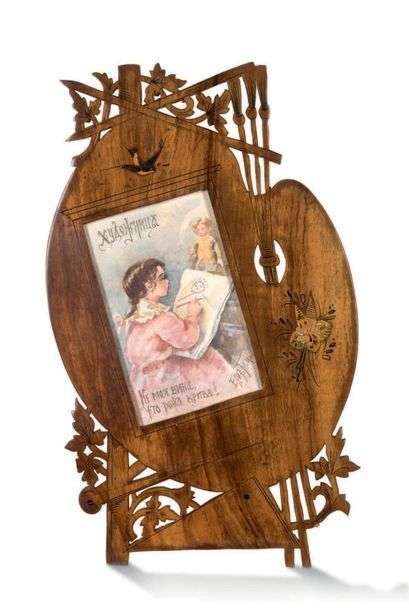 Beau cadre Art Nouveau marqueté et ajouré avec au dos un cachet Abramtsévo