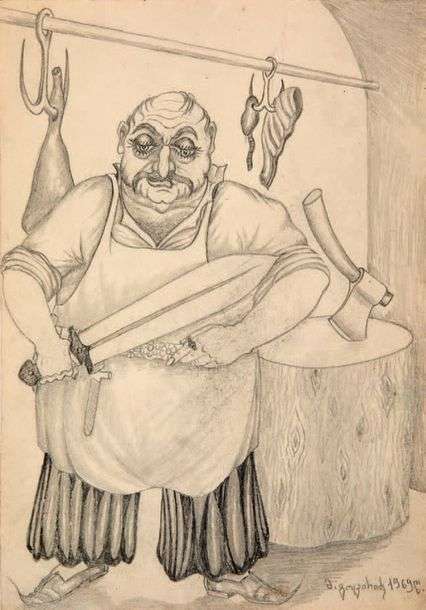 Signé en géorgien et daté « M. Gotsiridzé 1969, titré et annoté au dos 28,5 x 20 cm