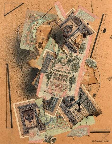 Collage aux papiers de monnaies calcinés
