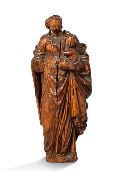 VIERGE À L'ENFANT en buis sculpté et patiné Italie (?), fin du XVIIIe siècle