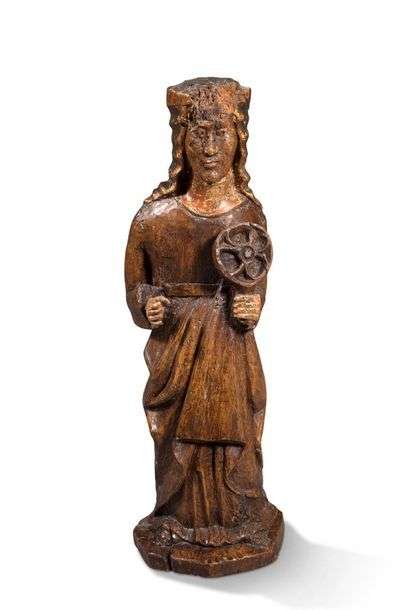 SAINTE CATHERINE en bois sculpté avec traces de polychromie XVIe siècle