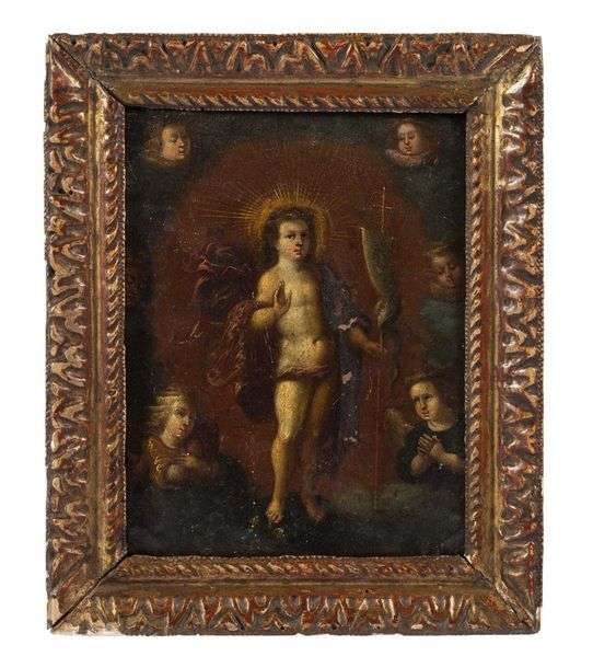 Saint Jean-Baptiste nimbé enfant entouré d'anges