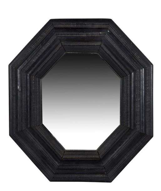 MIROIR en bois noirçi de forme octogonale et baguettes ondées XVIIe siècle