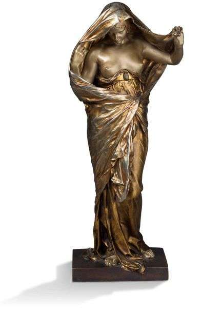 Epreuve en bronze à patine dorée et argentée Signée sur le socle Fondeur : Susse D'après la sculpture en marbre polychrome de 1899 conservée au Musée d'Orsay