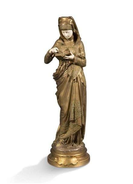 Epreuve en bronze à patine médaille et ivoire sur la terrasse. Inscrit «Liseuse sur le socle»