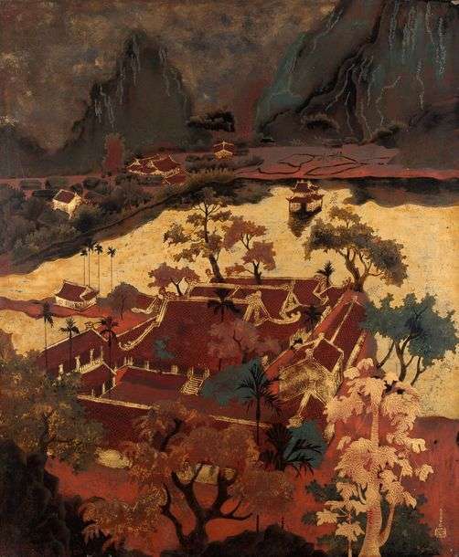 Laque et rehauts d’or, signée «Duong» en bas à droite